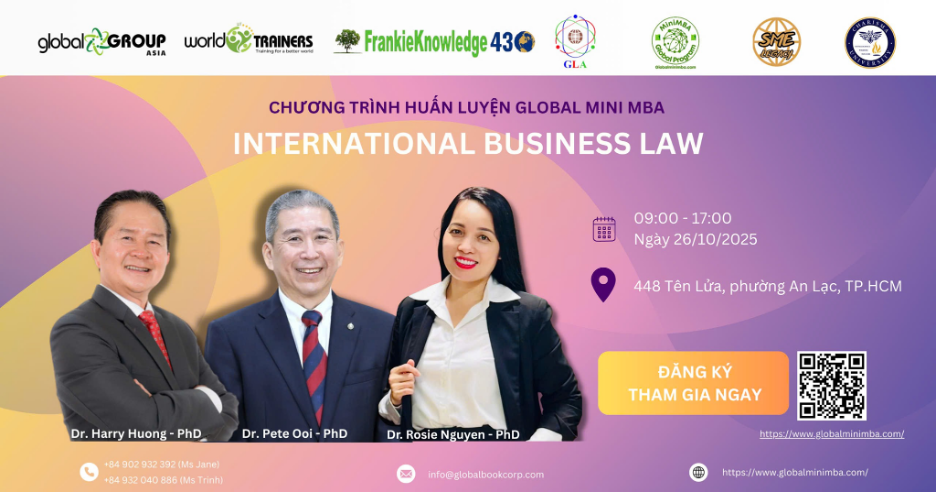 Tham gia ngay chuyên đề International Business Laws trong chương trình Global Mini MBA để nâng tầm tư duy pháp lý, tự tin hội nhập và dẫn dắt doanh nghiệp của bạn chinh phục thị trường quốc tế một cách chuyên nghiệp, minh bạch và bền vững.