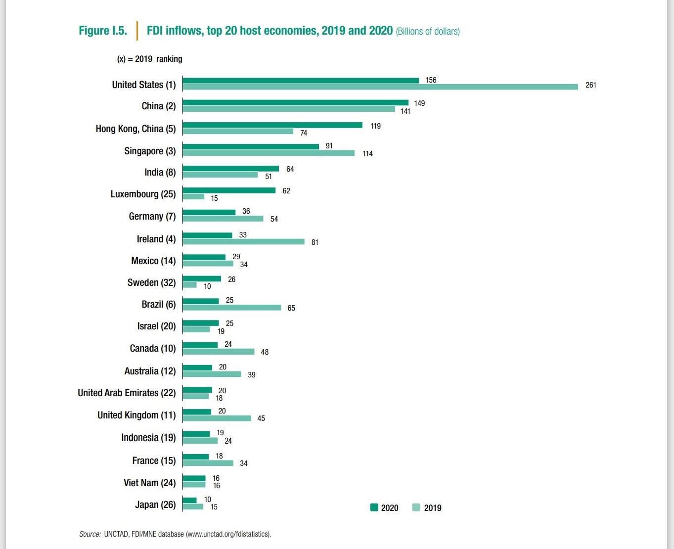 Lần đầu tiên Việt Nam lọt top 20 quốc gia thu hút FDI nhất thế giới