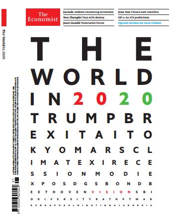 The new decade provides an excuse to look beyond the coming year. A special section, “2020 visions”, reviews long-range predictions from the past and for the future, speculates on what the world is doing today that will appal our grandchildren, and includes ideas on tech’s evolution from the founders of DeepMind and Huawei. Elsewhere, guest contributors invite us to think afresh about the future of everything from Africa to Venezuela to the American Dream.